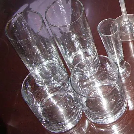 Showcased is a full range of glasses with different shapes and sizes. They are made of high-quality clear glass with a polished finish. These exquisite glasses will surely elicit a fine dining experience.