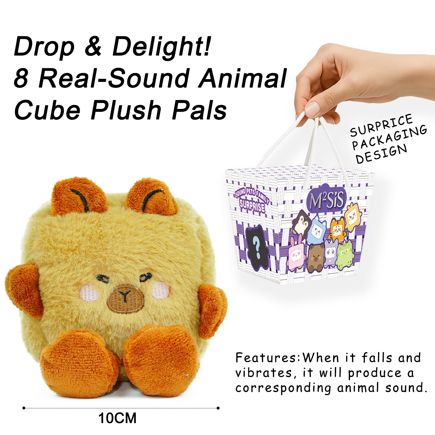 Suprise basket box packing — With a soft squeeze, it plays the real animal sound to bring smiles, giggles, and endless sensory fun. Features:Soft & fluffy faux fur. Compact cube shape – perfect for little hands. Real animal sound with every drop. Ideal for sensory development & imaginative play.