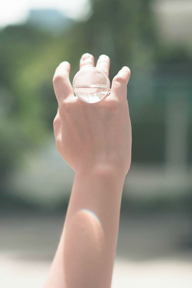When sunlight shines through water surface inside jewelry at exactly 42 degree, rainbow appears.
