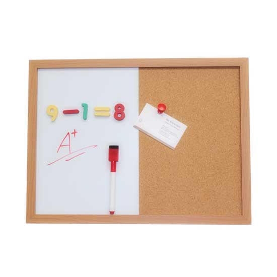 This is a whiteboard and corkboard combo that features a dry erase and magnetic use. It is made with a robust housing for an extra-long service life. The simple yet elegant design can blend into any room decoration.