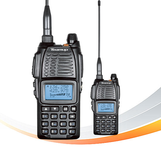 This is a dual band walkie talkie with a black finish. It enables you to listen to FM radio programs. It is ideal to be used in hotels and KTVs and by security guards and tour guides.
