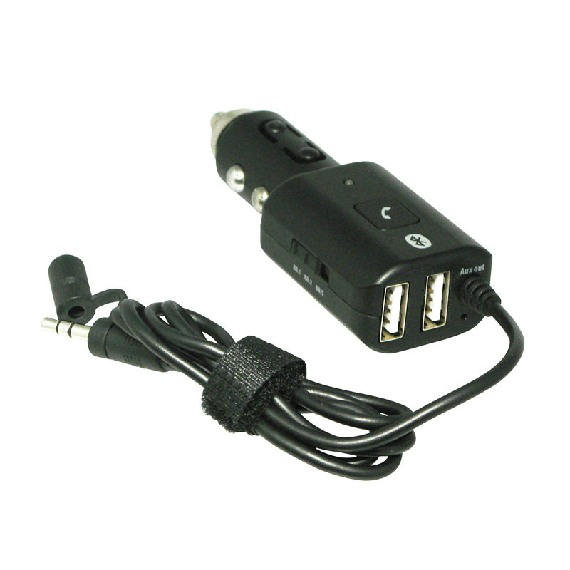 - Bluetooth 4.0 (Low Latency) - HFP, HSP, A2DP, AVRCP - Hands free / Stream Music / Option : aptX, AAC - Dual USB Charging output: 5V/2.5A + 5V/2.5A - Fixed 3 FM Frequencies - Input : DC 12V or 24V - Multi Pairing : up to 8 devices - Multi Point : Connect 2 devices simultaneously - Vol+ (Next song) / Vol- (Previous song) - Echo & noise cancelling technology for a clear call quality