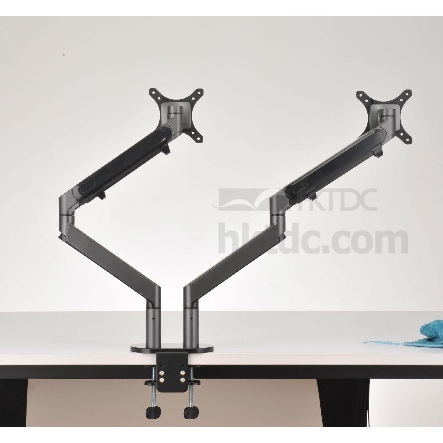 Dual LCD Monitor Gas Spring Desk Mount Fully Adjustable Fits Two Screens up to 27"