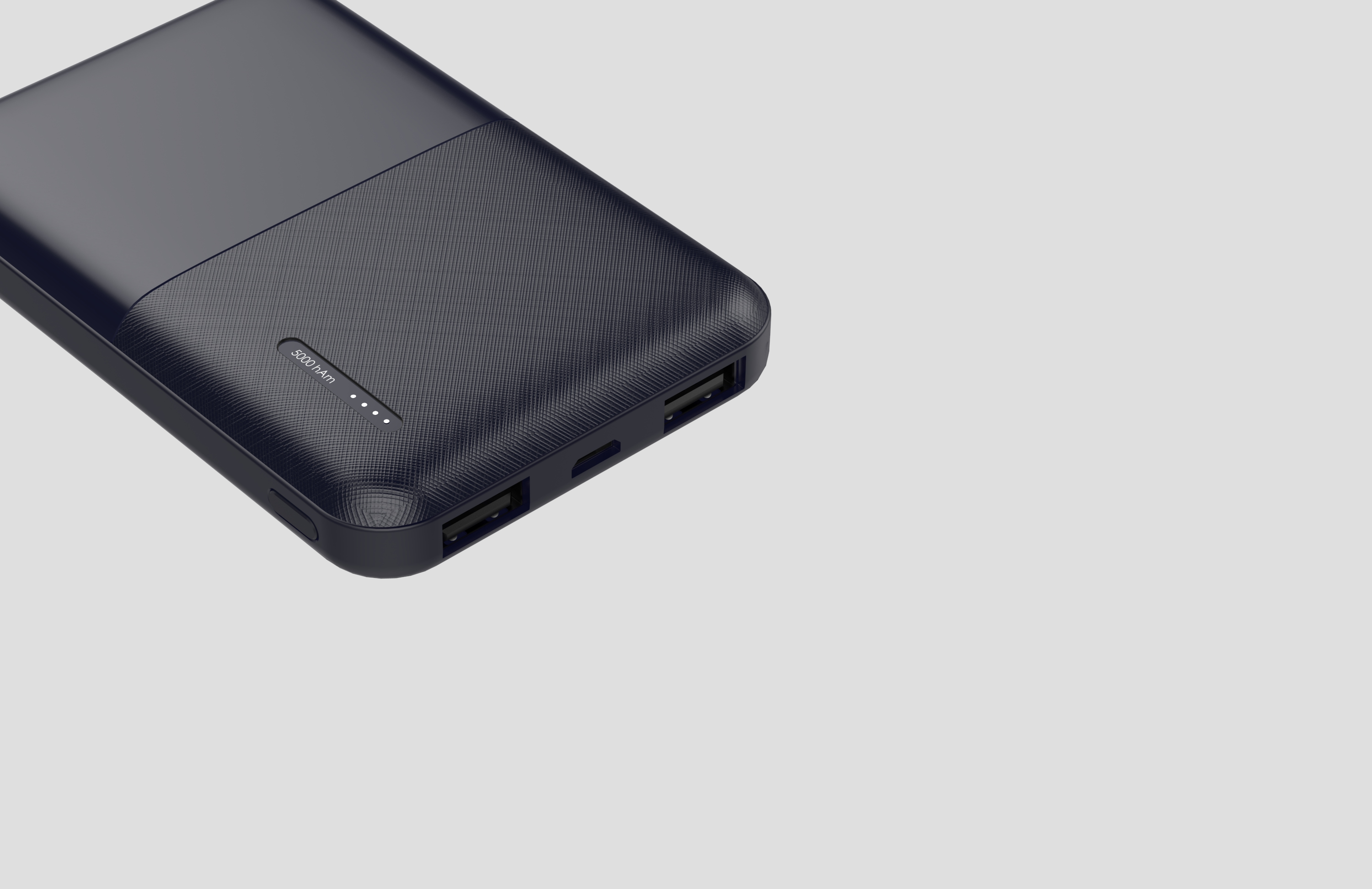 Mobile Battery Pack, Dual ports rechargeable power bank 5000mAh, UL certified built-in battery