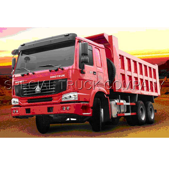 Featured is a dump truck made for transporting loose materials like sand, gravel or dirt. The heavy-duty construction ensures years of guaranteed ride. This dump truck is perfect for transporting loads onto construction sites within cities.