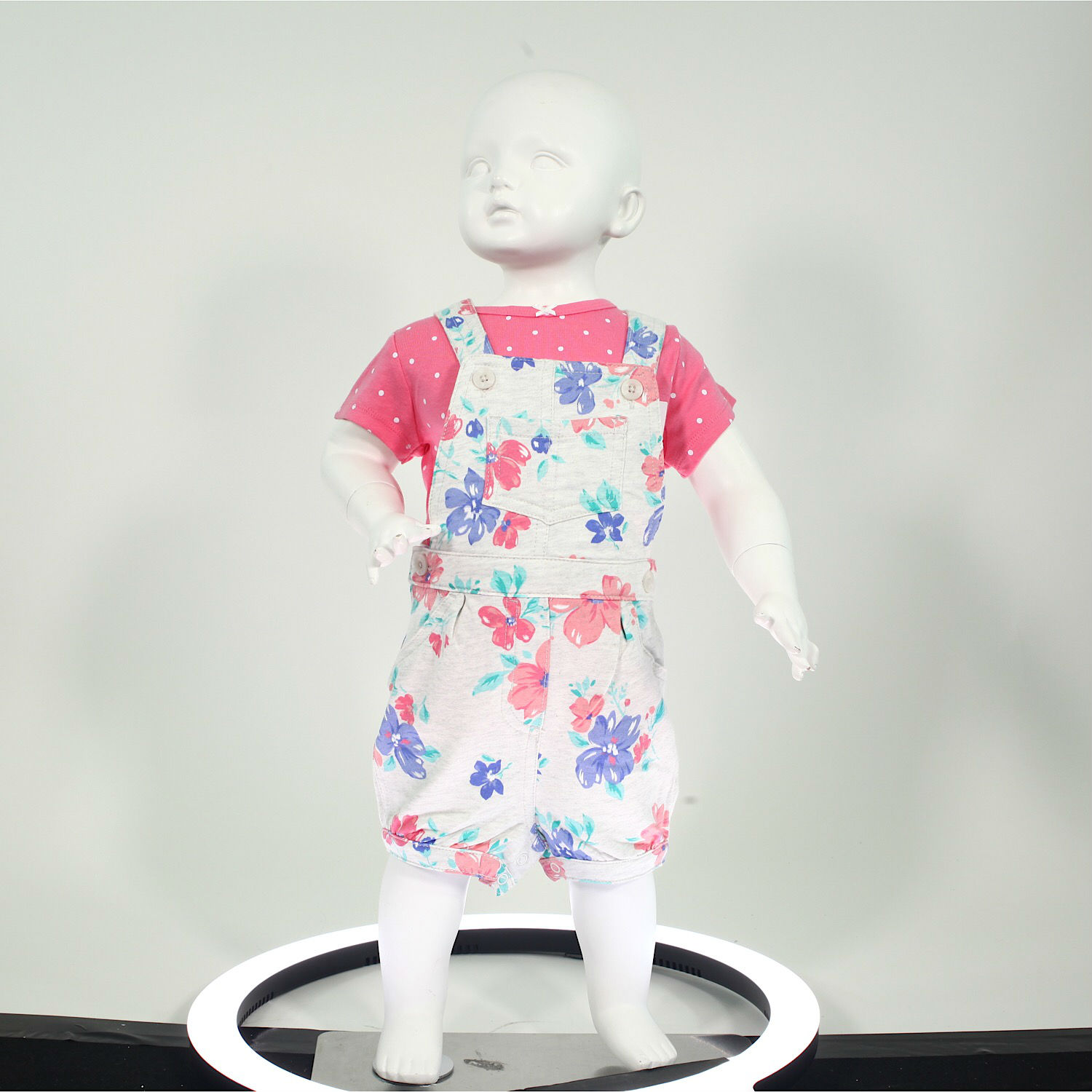 Polka dot top pink top with floral dungaree