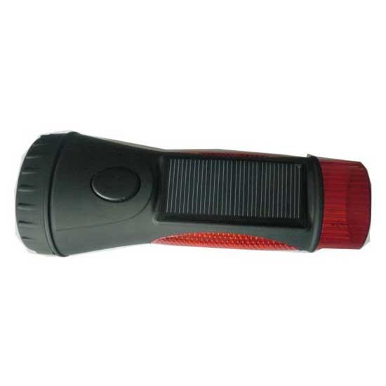 This flashlight can be recharged by solar power, a car adapter and hand cranking. It features four super bright LEDs and 8 red blinking LEDs. This flashlight is ultra convenient for drivers.
