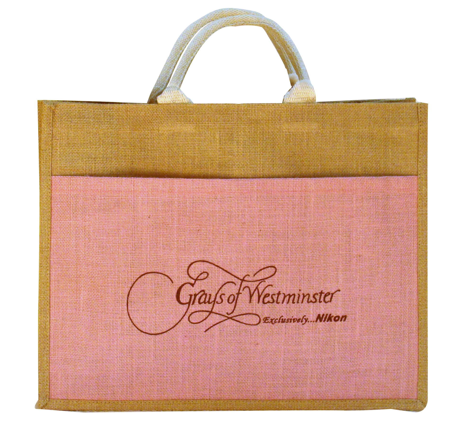 Standard Jute Shopping Bag with front pocket having velcro closure.