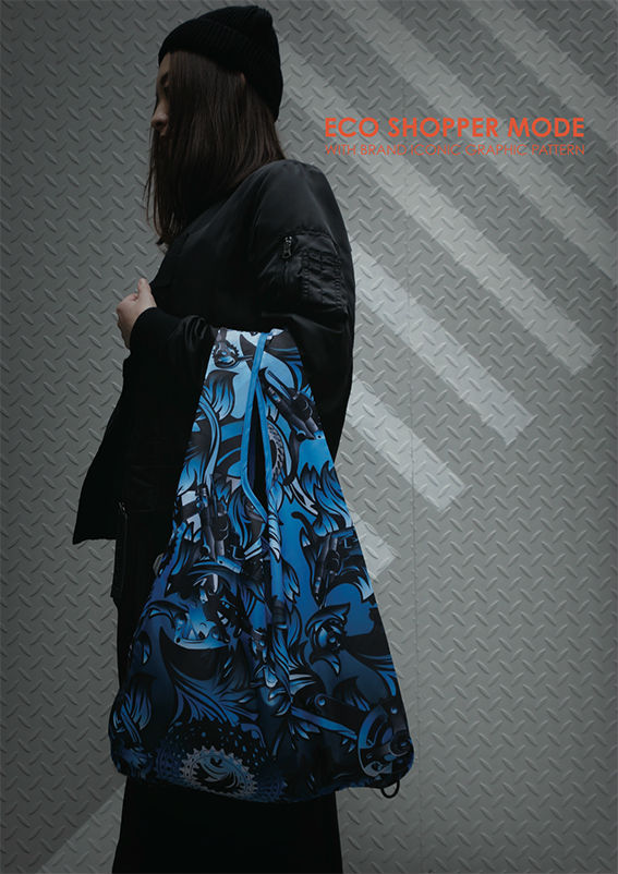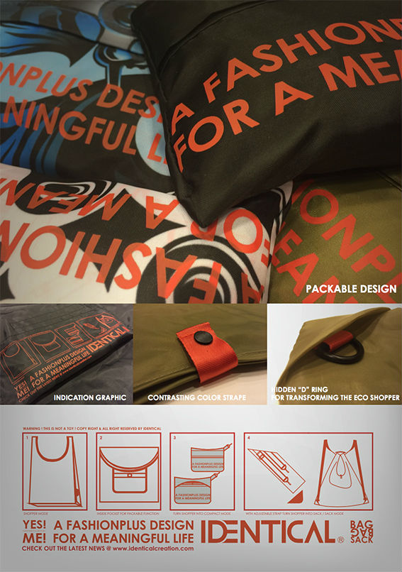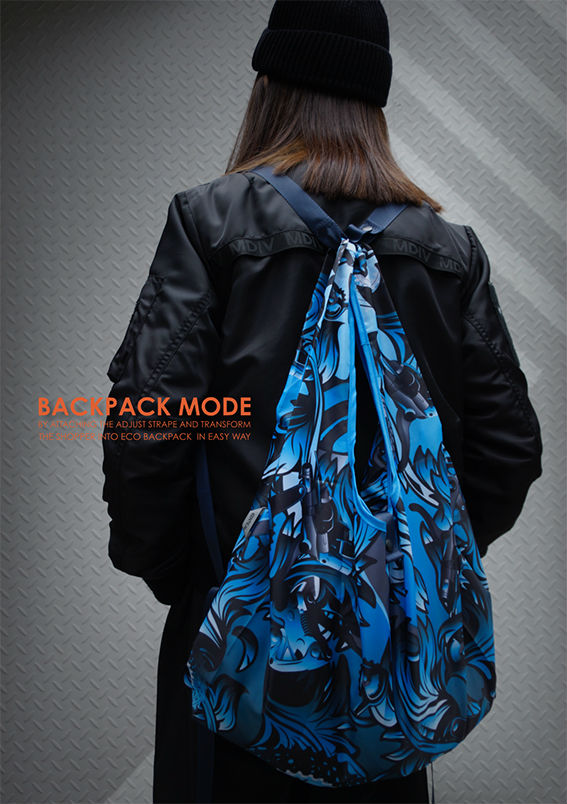 Design innovate from eco shopping bag transform to backpack with functional strape.