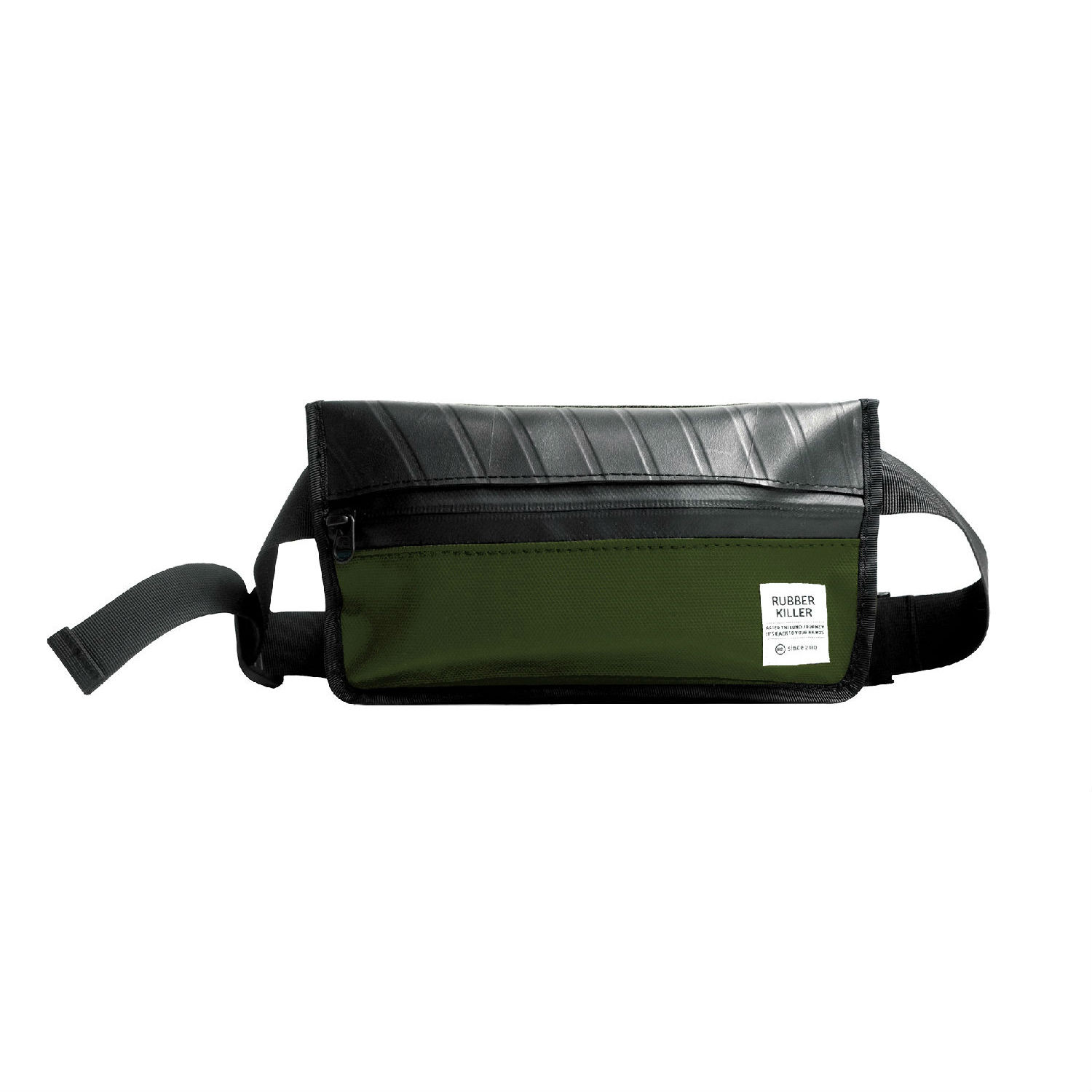 • Material: recycled inner tubes, 1000D Cordura nylon fabric, and YKK hardware.