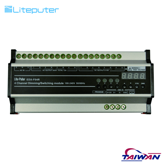 DMX Channel:4/Input Voltage:100-240V/Output power:5A per channel, total 12A/Protocol:DMX or EDX/Frequency:50HZ or 60HZ/Size:190 (L) X 88(W) X 57(H) mm/Weight:590g/Output: leading-edge or 0-10V/Color:Grey/Features: can set 99 zones and 6 scenes/Voltage:100-240V