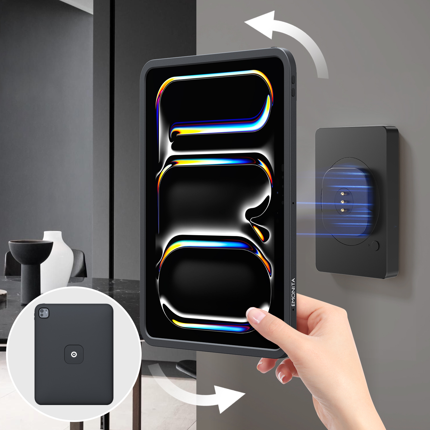 Transform your iPad into a versatile smart display with the EMONITA Magnetic Wall Mount Kit, featuring an upgraded 18W quick-charging system, strong magnetic attachment, and 360° rotation. Designed to fit seamlessly with any standard junction box, this mounting solution combines functionality with modern aesthetics.