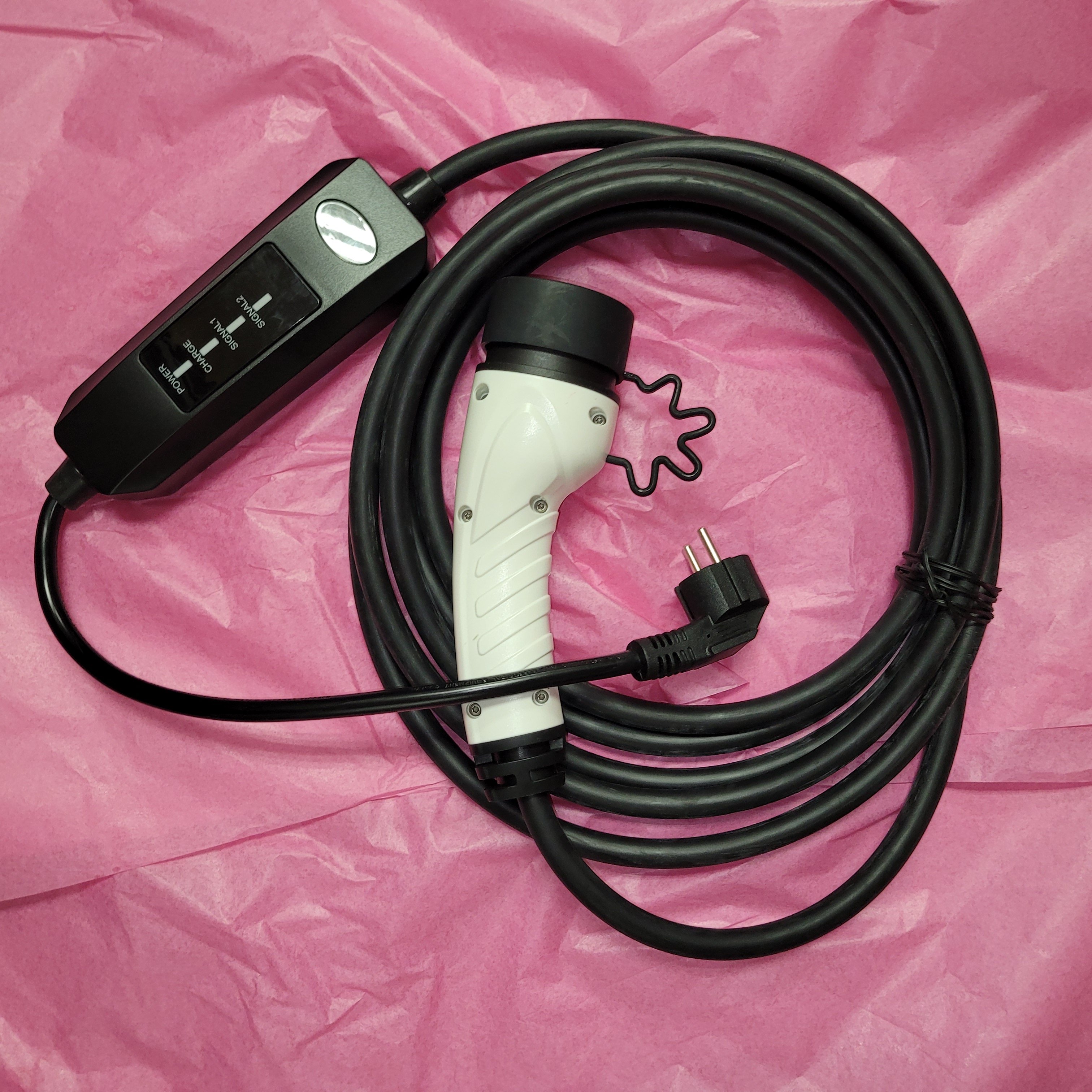 The 13A IEC type 2 mode 2 EV charging cable allows you to recharge your electric vehicle safely in mode 2 on any household socket at a charging power of 3kW (at 13A). All you have to do is connect the terminal to the domestic standard socket and connect it on the vehicle side (type 2). Charging then starts automatically.