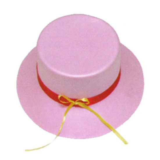 This is a toy hat with a dainty design. It is made of quality EVA material in light purple. The red band and yellow bow make this hat look more charming.