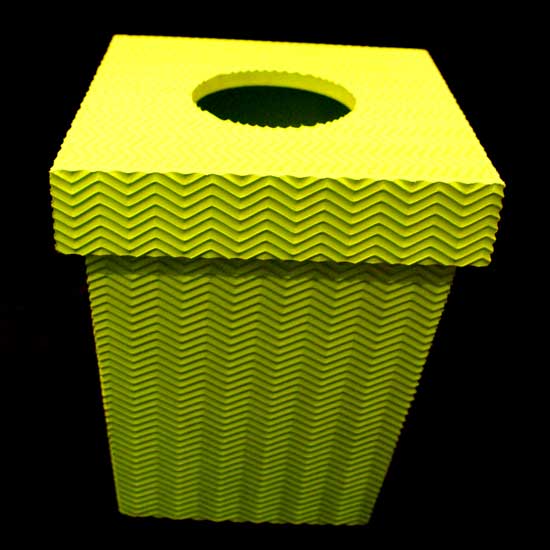Featured is a storage box with a fluorescent green color. The lid comes with a circular hollow while the body features a wavy pattern for a modern rugged texture. Keep your little household accessories neat and tidy in this attractive storage box.