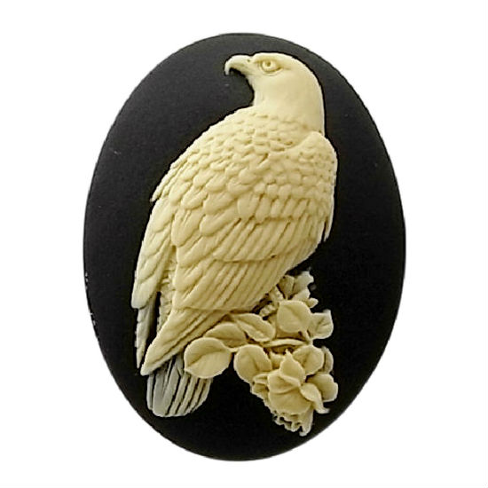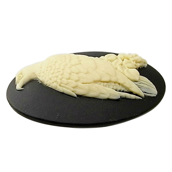 Ideal for scrapbooking or making handicrafts, this animal-themed cameo highlights an intricately-etched eagle to boast great quality. Setting off by a black oval back plate, the eagle stands out with its ivory tone and realistic layers of feathers carved on its body.