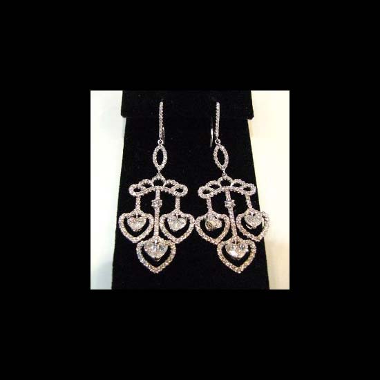 Each earring consists of 3 open hearts with a suspended gemstone inside