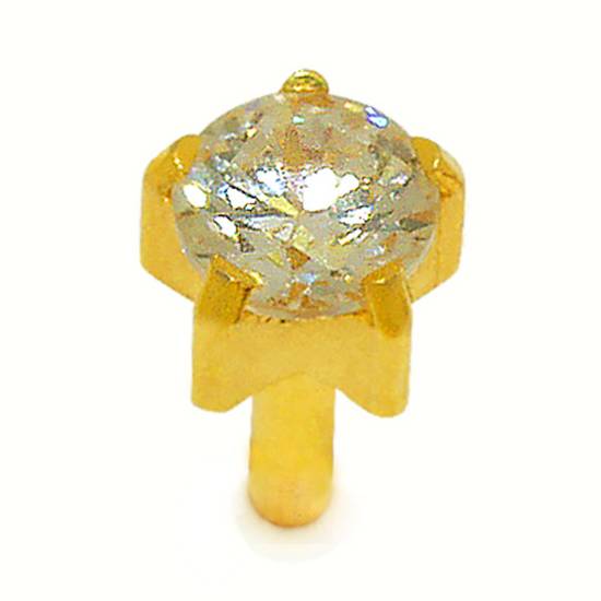 This is an earring made with golden metals and a white coloured crystal. the cryal is circular and is supported by 5 thongs.