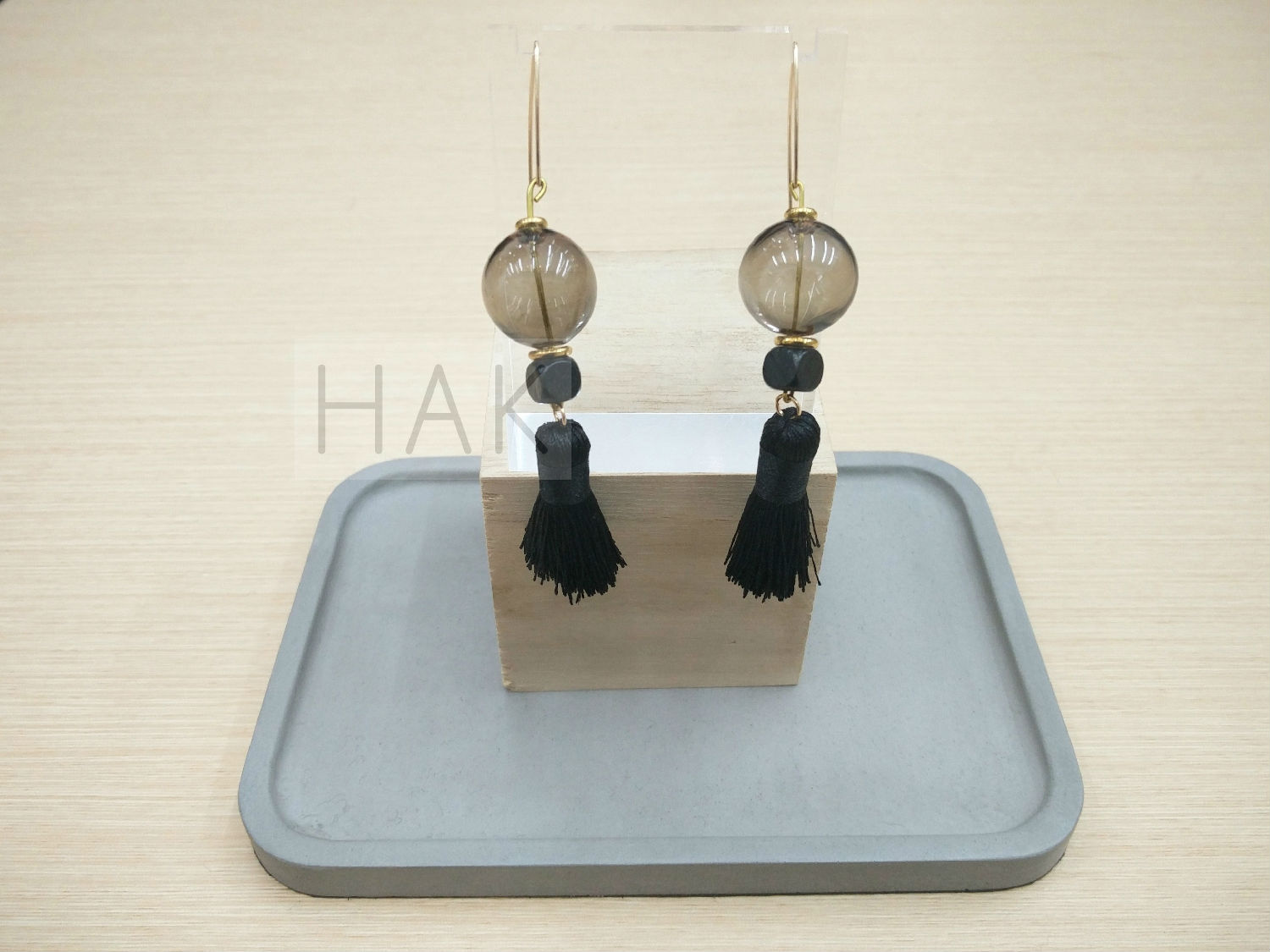 Give a mysterious charm to your outfit with this pair of black glass ball earrings. Perfect for both casual and formal occasions, it dangles a see-through sphere followed by a bead and tassel accent to turn heads as you make your entrance. The delicate fish hook closure further ensures secure and easy wearing at all time.