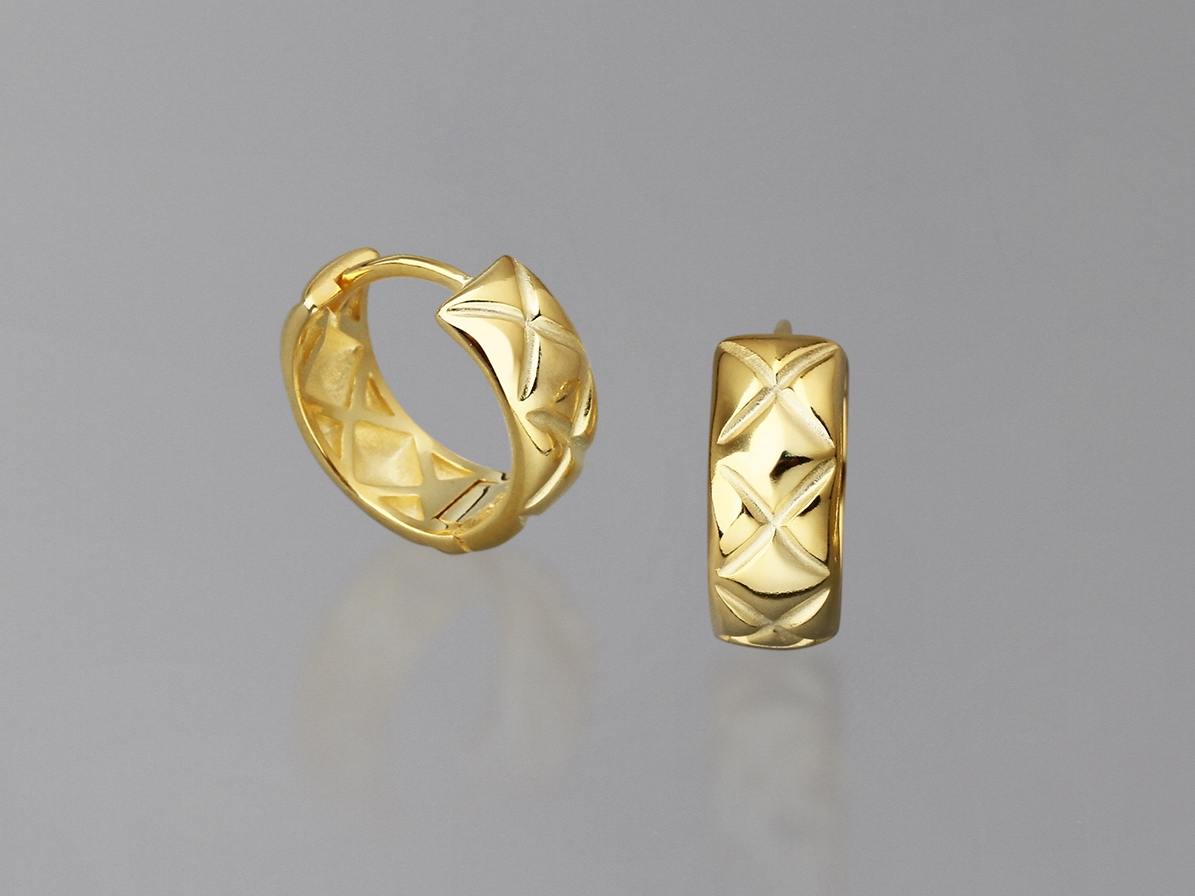 STERLING SILVER EARRINGS HOOP, YELLOW GOLD PLATED