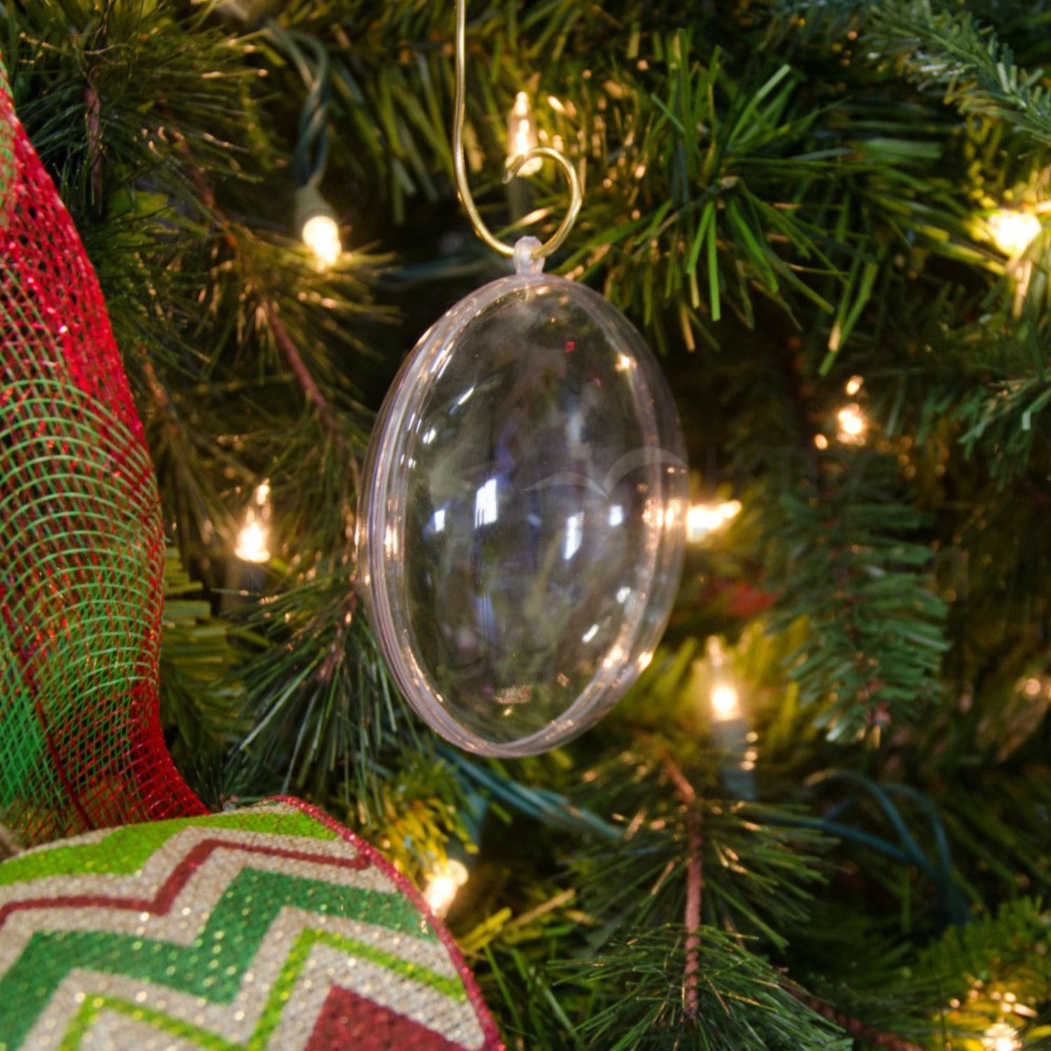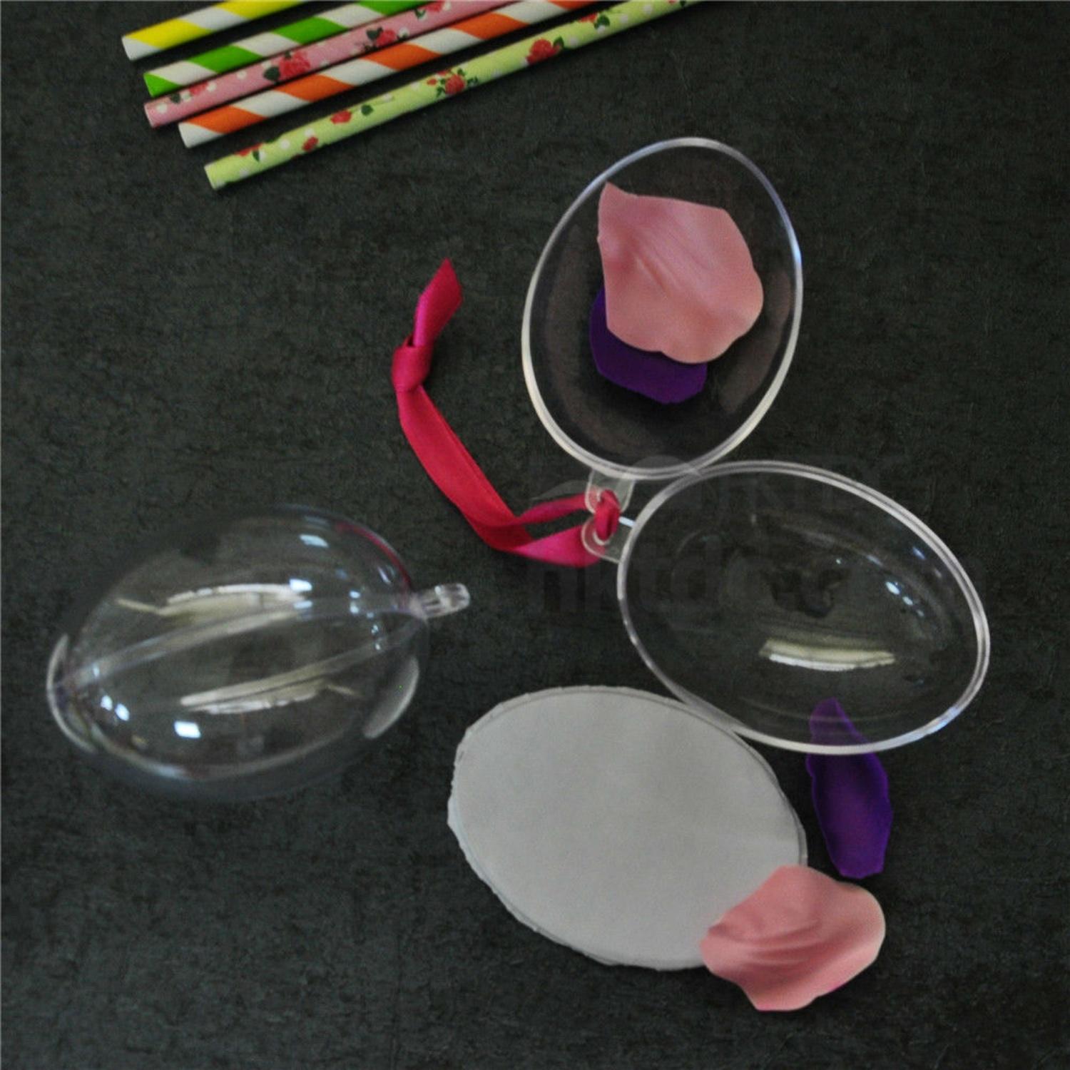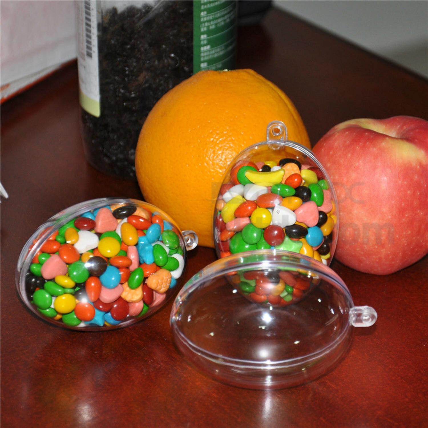 Clear Plastic Ball are designed with integral hangers and flat seams. Simply snap them open to fill with ornamental papers or small trinkets, close them to use as molds or bases. Create festive accents for any occasion, just add paints, markers, enhancement foils, ribbon, lace and your own artistic imagination! It comes with two halves push together and includes incorporates a hanging hook .