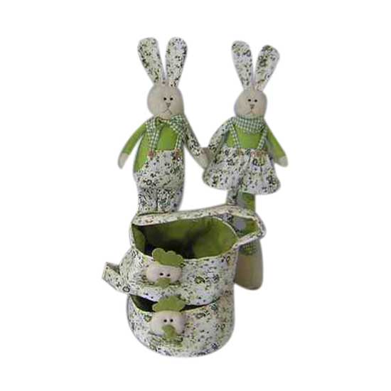 Featured here is a set of decorations designed for Easter. The set includes two Easter bunnies and two tiny bags. The bags and the two bunnies are well made with soft fabric for a nice touch.