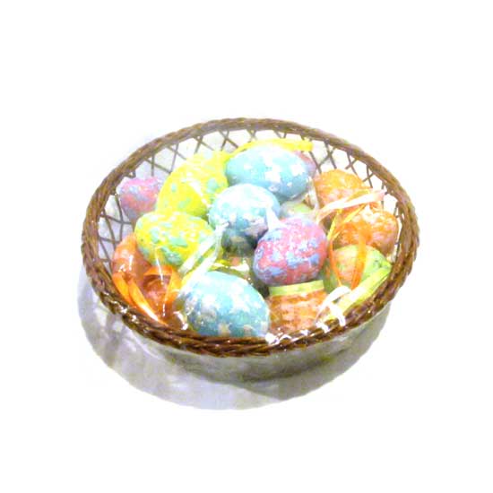 This is a series of Easter egg decorations in a wired basket. The multi-colored design gives these Easter eggs a totally new and fresh look. This Easter egg set can be used as cute hanging decorations in Easter.