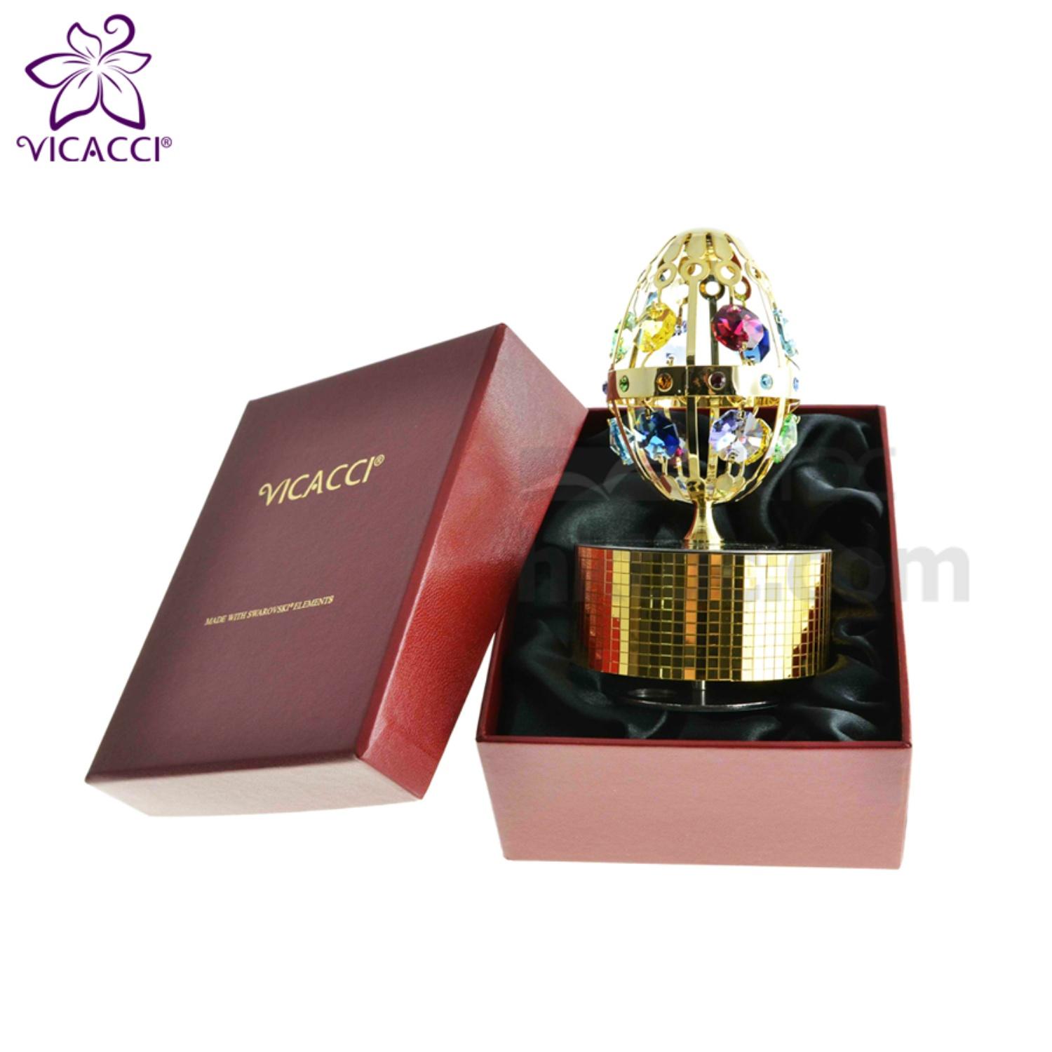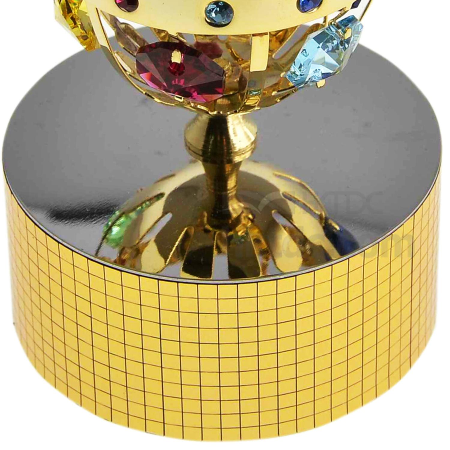 Introduce a lively enlivenment to your home sweet home with this metal music box. Lavished with a radiating coat of 24K gold plating, the rhinestone-flush Easter egg swirls elegantly to the rhythm over a beautifully checked music box. Simply rotate the circular base to fill your bedroom with the reminiscent notes of your favorite classical music.