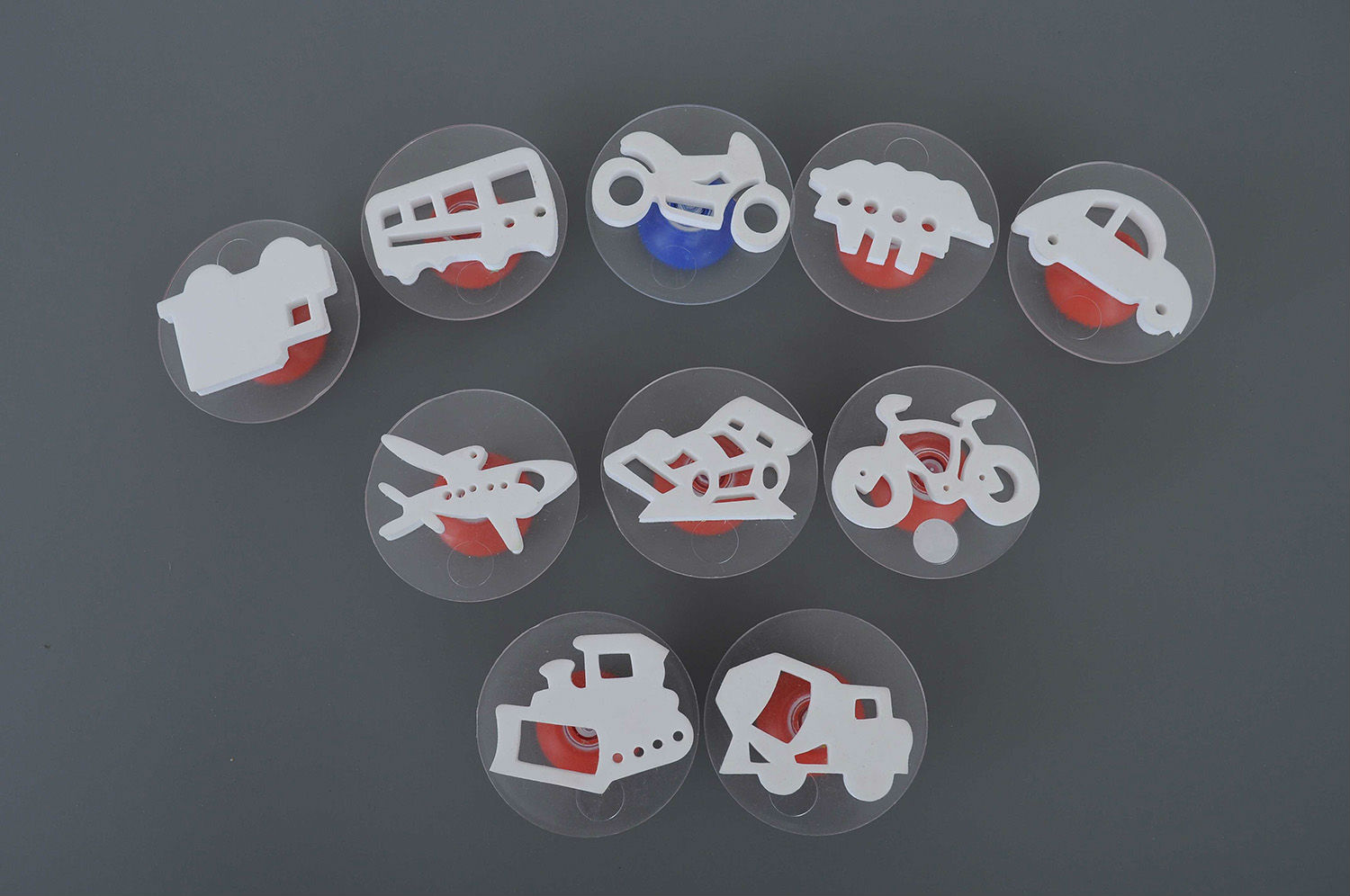 Easy-grip stampers ( plane, bus, bulldozer, truck, race car, cement mixer, car, ferry, motorcycle, bicycle)
