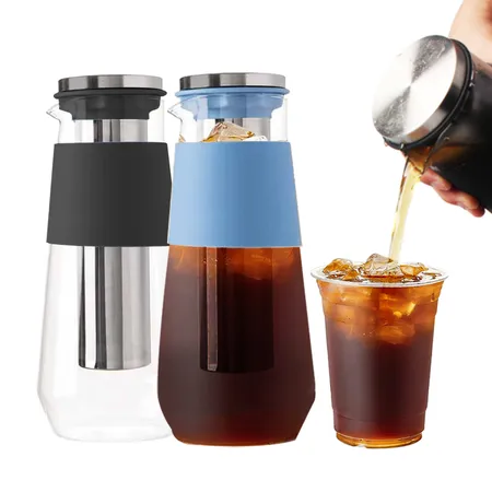 Easy To Clean Reusable Stainless Steel Mesh Filter Pitcher Jar Airtight Ice Tea Brewer Cold Brew Coffee Maker