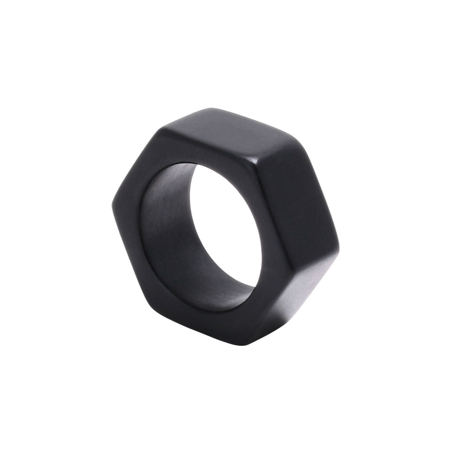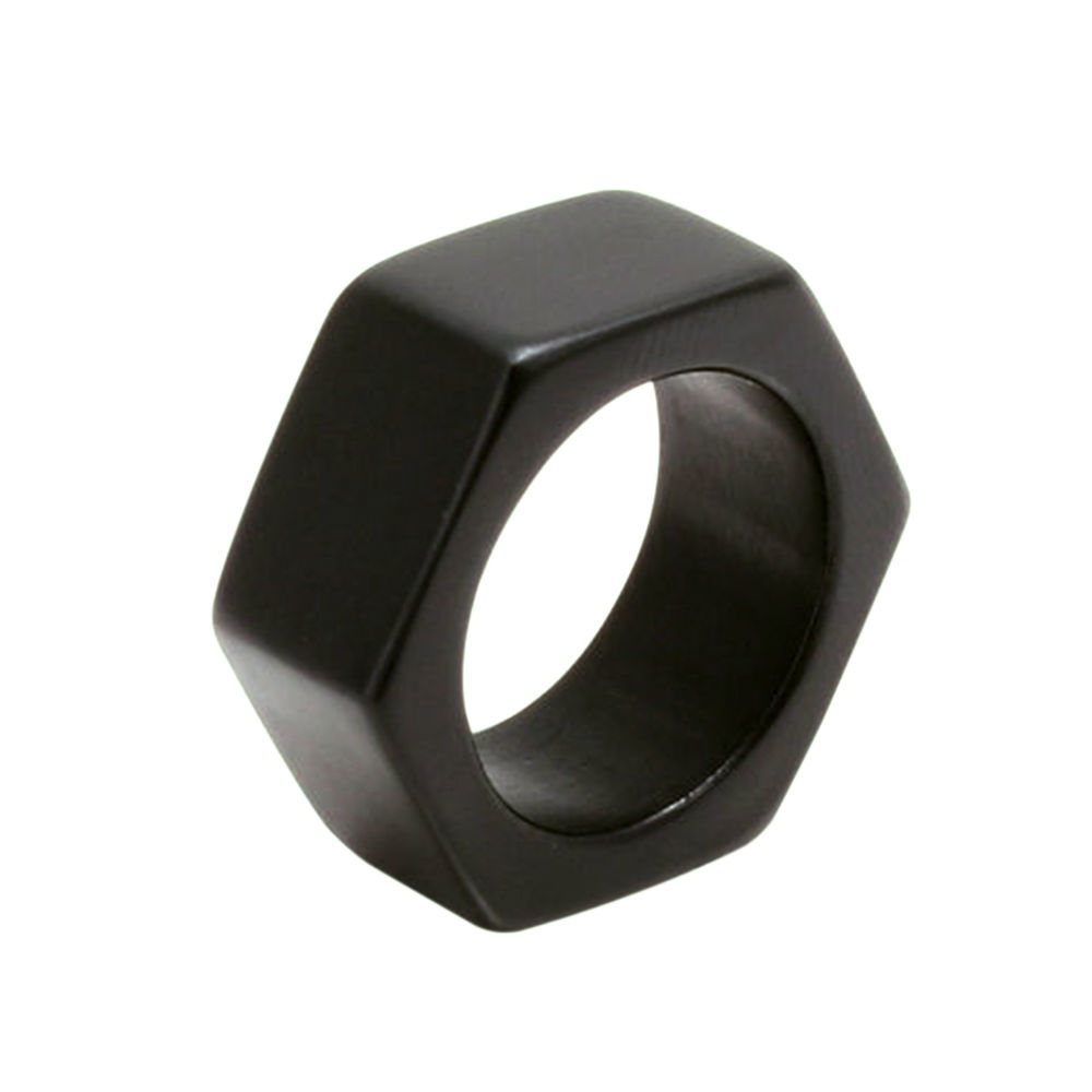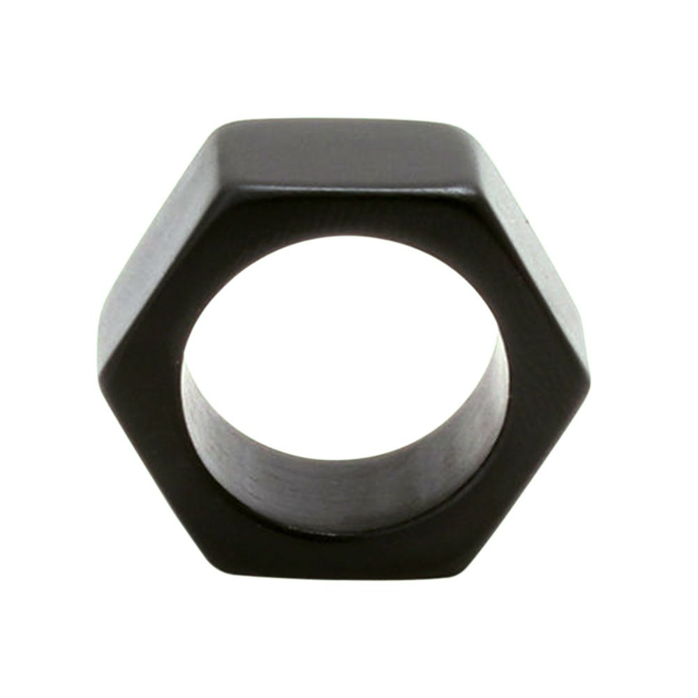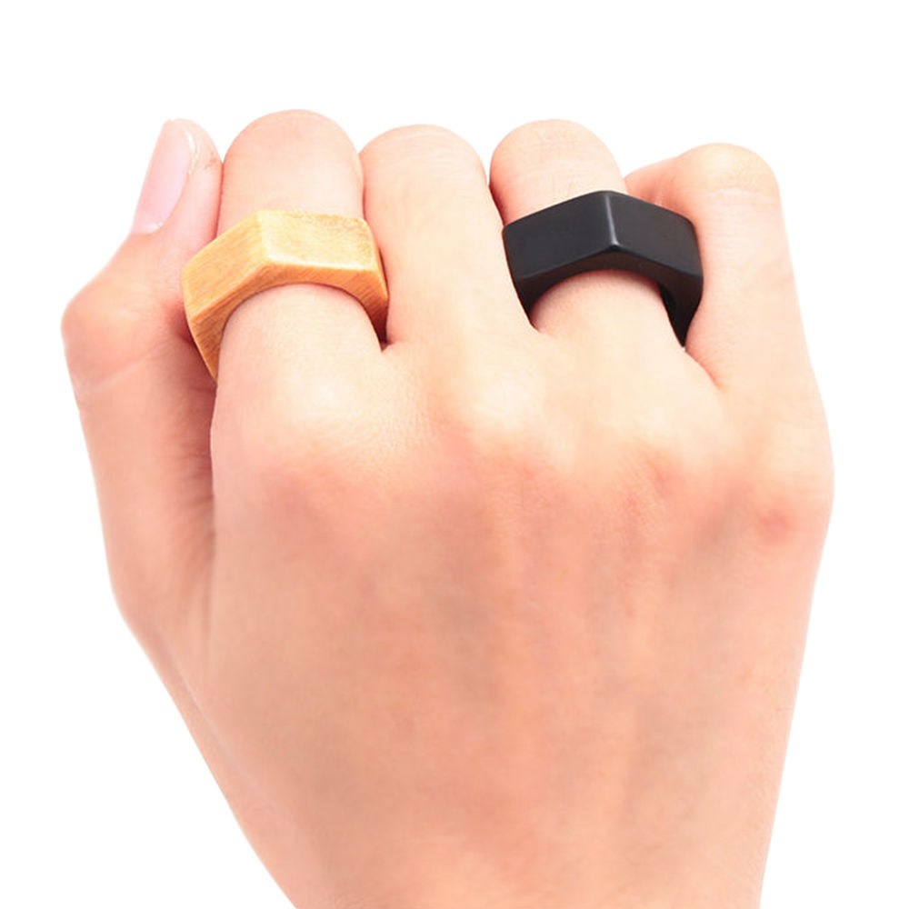 Don't miss out this geometric wooden ring that can ginger up your leather jacket instantly. Crafted from ebony black wood, this monotone ring is minimalist in terms of color. Yet the unique hexagonal contour makes the ring stand out from boring wooden rings.