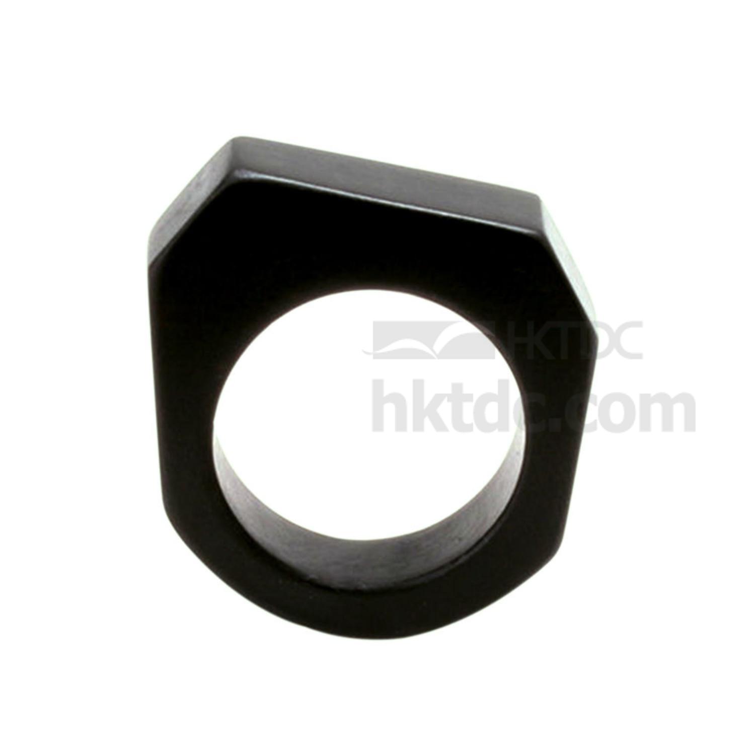 Don't miss out this six angle wooden ring that can ginger up your leather jacket instantly. Crafted from ebony black wood, this monotone ring is minimalist in terms of color. Yet the unique shape contour makes the ring stand out from boring wooden rings.