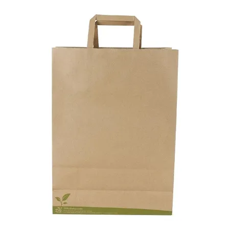 It is a great option to enhance your brand value while achieving low costs. The paper bags are available in white or natural brown paper (virgin or recycled). All bags are made from 100% recycled materials, which are recyclable, compostable and printed with non-toxic water-based inks. Flat handle paper bags are the perfect solution for businesses looking for a high-quality and eco-friendly packaging option.