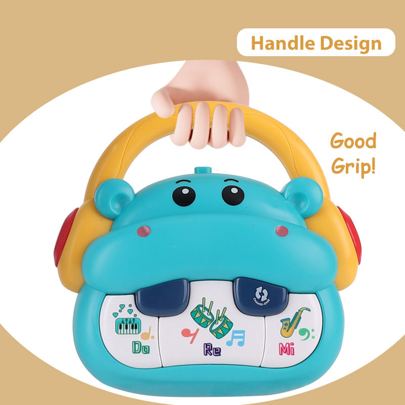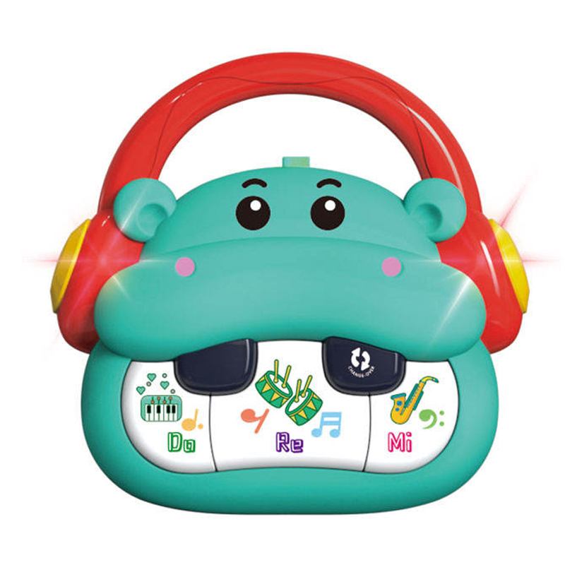 Educational Electric Animal Shape Instrument Musical Toys Adorable Musical Fiddle Baby Piano Hippo Toys with Music and Light