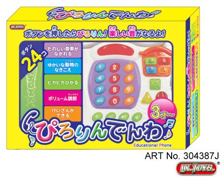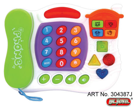 This education phone contains different sound effect and Calculating function. Chirldren listen to the question and answer the question by pressing the numbers on the dial. Also, it has different sound effects.