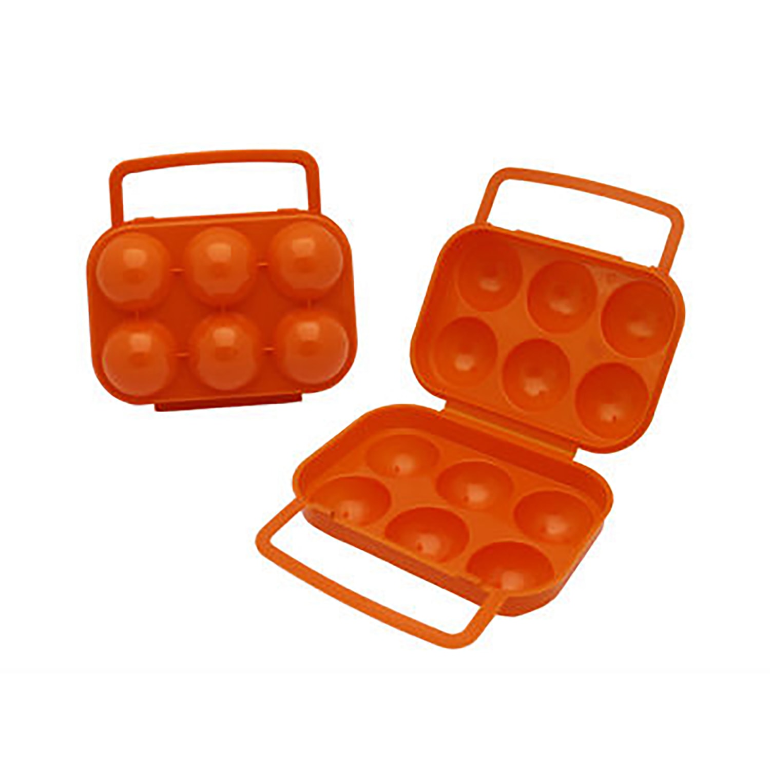 Handheld plastic egg holder for 6 eggs includes the following features :