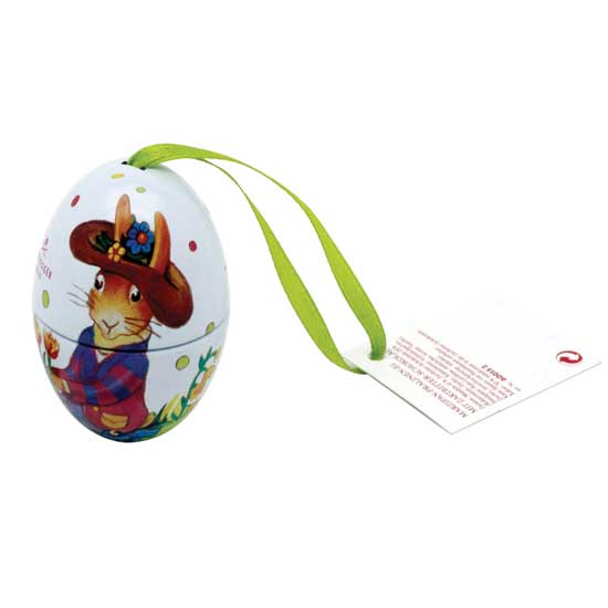 The egg tin is specially designed for storing the Easter egg. It comes with a drawstring on the top for easy carrying. The beautiful and adorable rabbit graphics simply make it stand out from the rest.