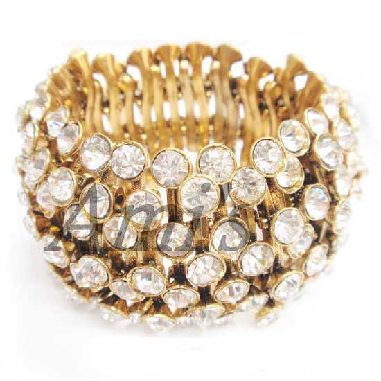 Highlighted here is a gracefully designed elastic bracelet in golden hue. The sparkling crystals add a sophisticated accent to the bracelet. This pictured bracelet matches Bohemian looks nicely.