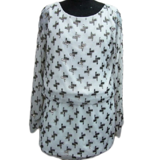 This is a ladies’ dress in white with eye-catching patterns. It is made with excellent workmanship and attention to detail. The soft fabric gives you a comfortable wearing experience.