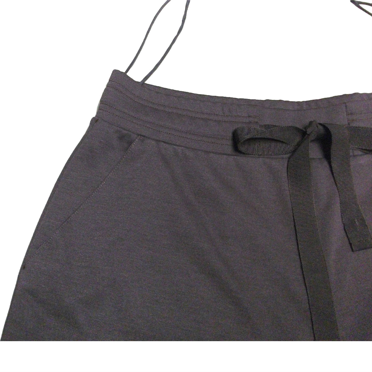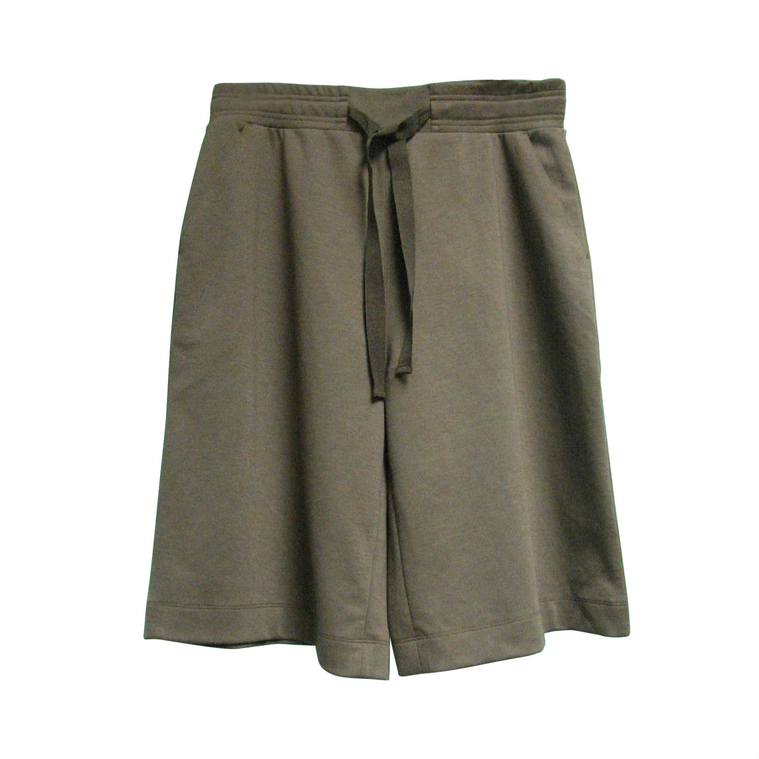 Knee length knitted shorts, elastic waistband decorated with gross grain tape, 2 slant pockets
