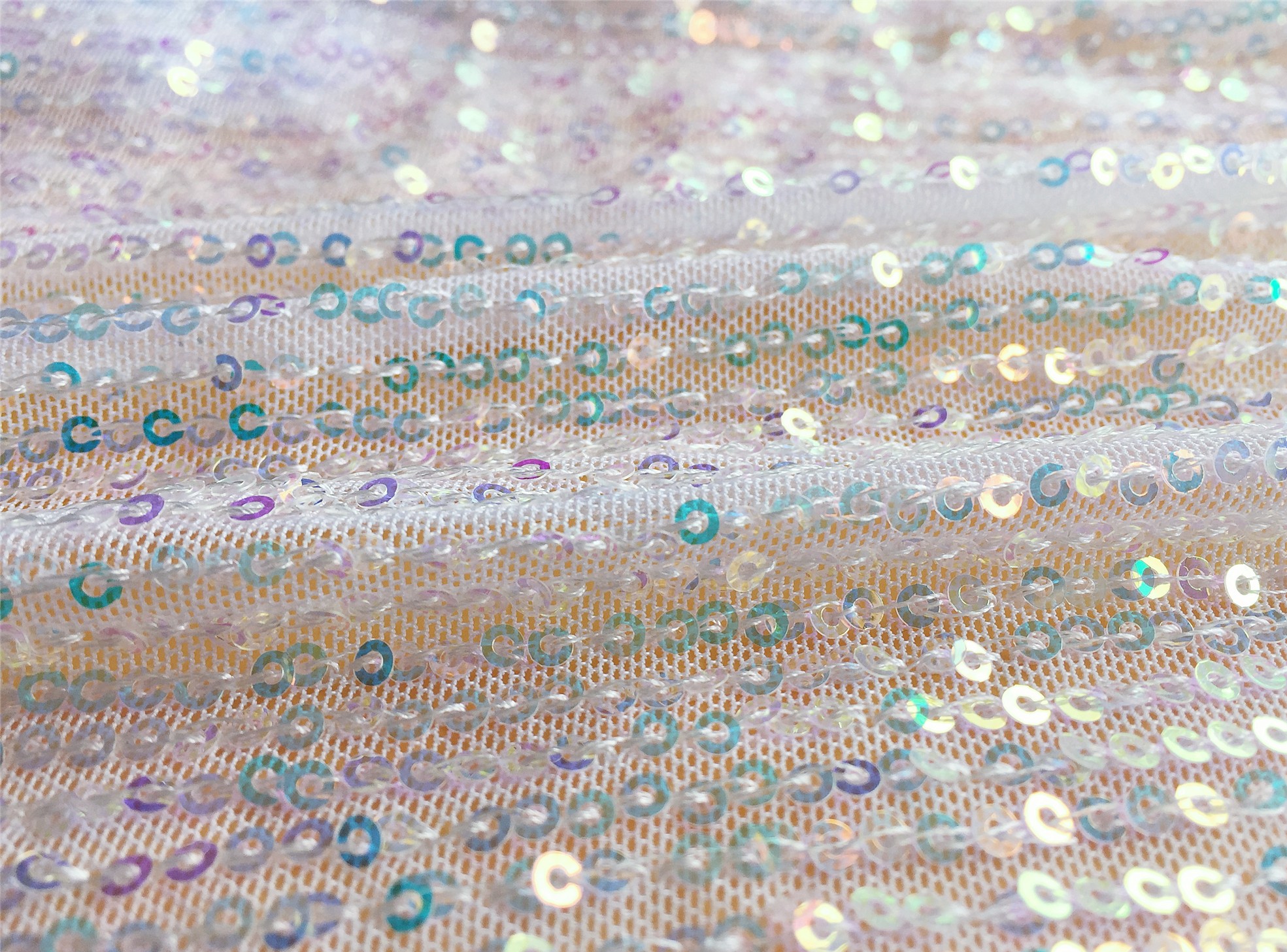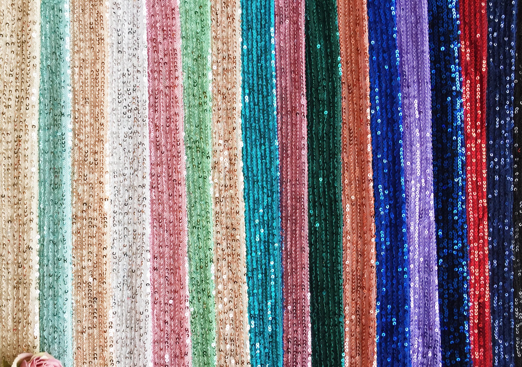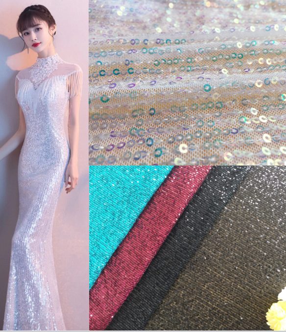 Four sides of elastic mesh embroidered vertical strip sequins.