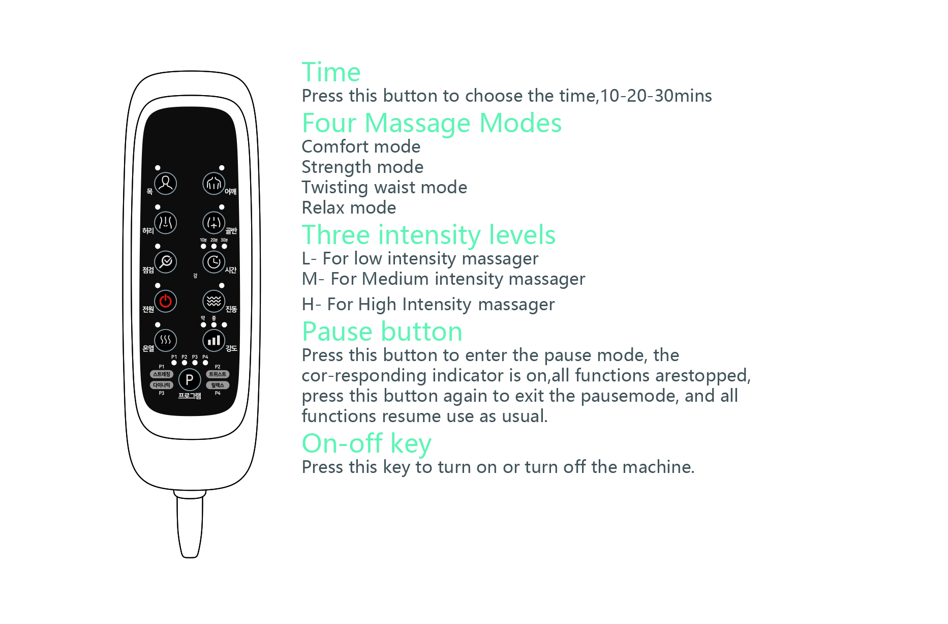 2.Massage areas: neck, shoulders, lumbar, buttocks,
