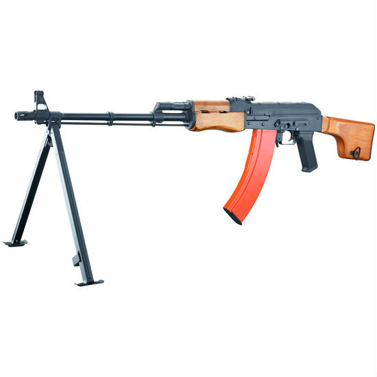 This PRK AK electric airsoft AEG rifle flaunts a realistic design and has an authentic real wood construction. It has a full metal receiver and comes with an integrated bipod for stable shooting. The electric airsoft has a magazine capacity of 800 rounds and offers a range of 190-200 feet.