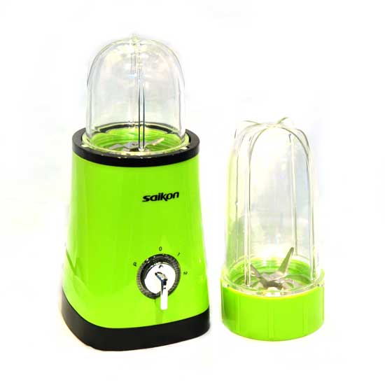 This electric blender comes in a compact design in light green with modern flair. It is professionally engineered to grind and blend food effectively. The versatile blender is designed with a lock for enhanced safety.