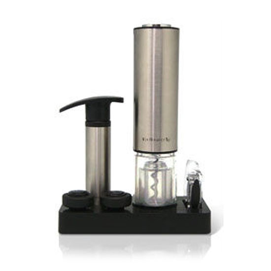 This electric corkscrew features a metallic look that is stylish and elegant. The set comes with a vacuum pump and stoppers for users convenience. This delightful bar accessories set also makes a welcome gift for wine lovers.