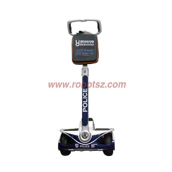 This is an electric scooter that is painted with police logos. It is engineered with a durable structure with two robust wheels for steadily running on any flat floor. With excellent auto balancing performance, this refined scooter makes an ideal transporter for police patrol or personal use.