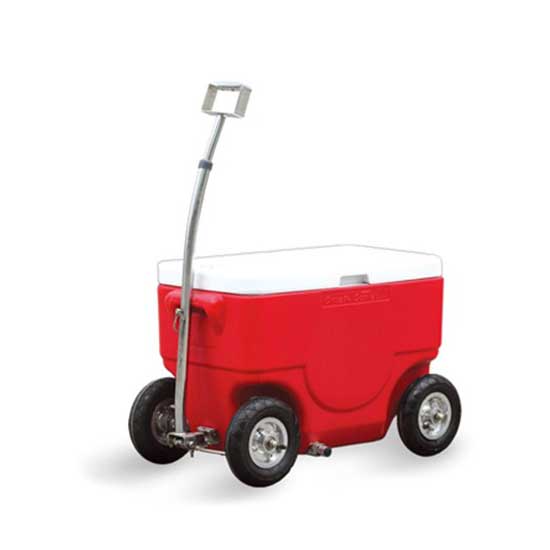 This is an electric scooter that comes with a unpowered trailer. The ball-bearing wheels are durable and sturdy for heavy-duty usage. The easy-to-grip handle is extendable for flexibility.