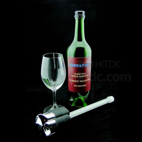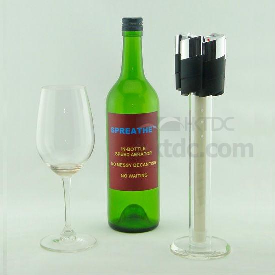 Shown is an electronic aerator set which makes aeration no longer confusing and wearisome. In just 2 minutes, a whole bottle of wine will be aerated for enjoyment. The wine will become more palatable with enhanced aroma and smoother finish. Each set includes a red pouch and transparent aerator holder for convenience.