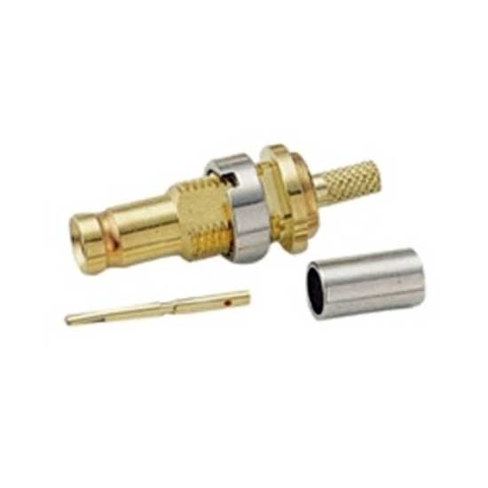 Displayed is an electrical connector that comes in a golden color. Made professionally, this connector is durable and easy to use. This high quality electrical connector can be applied on various electronic devices.
