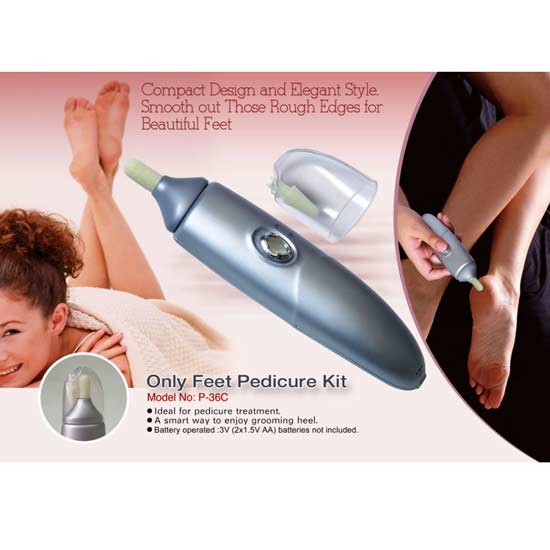 Showcased is an electrical pedicure kit to smooth out rough skin for beautiful feet. The handheld design allows users to handle anywhere. This convenient pedicure kit makes a smart way to enjoy grooming.